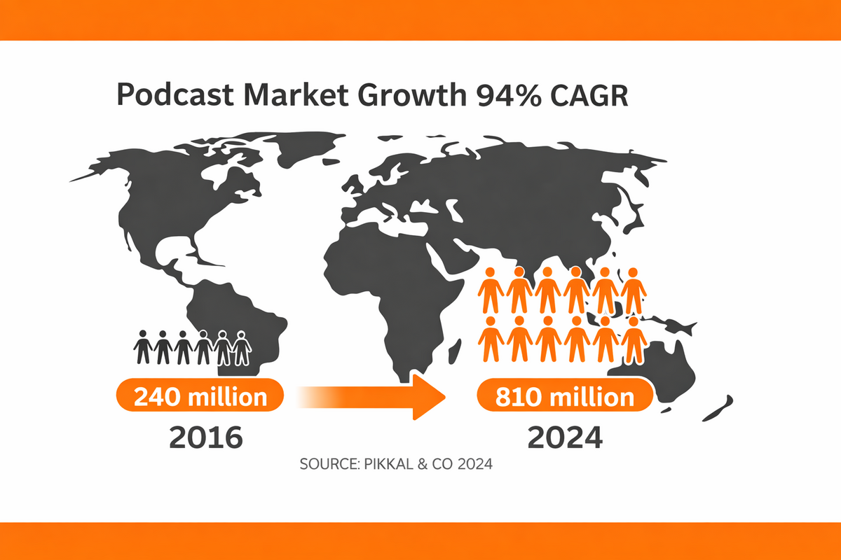 Welcome to the world of podcasting. How times have changed. Podcast audiences grew 350% in the last 8 years, taking podcasting from a niche platform to a mainstream medium that hosts presidential candidates.